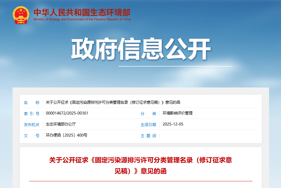 生态环境部|关于公开征求《固定污染源排污许可分类管理名录(修订征求意见稿)》意见的函