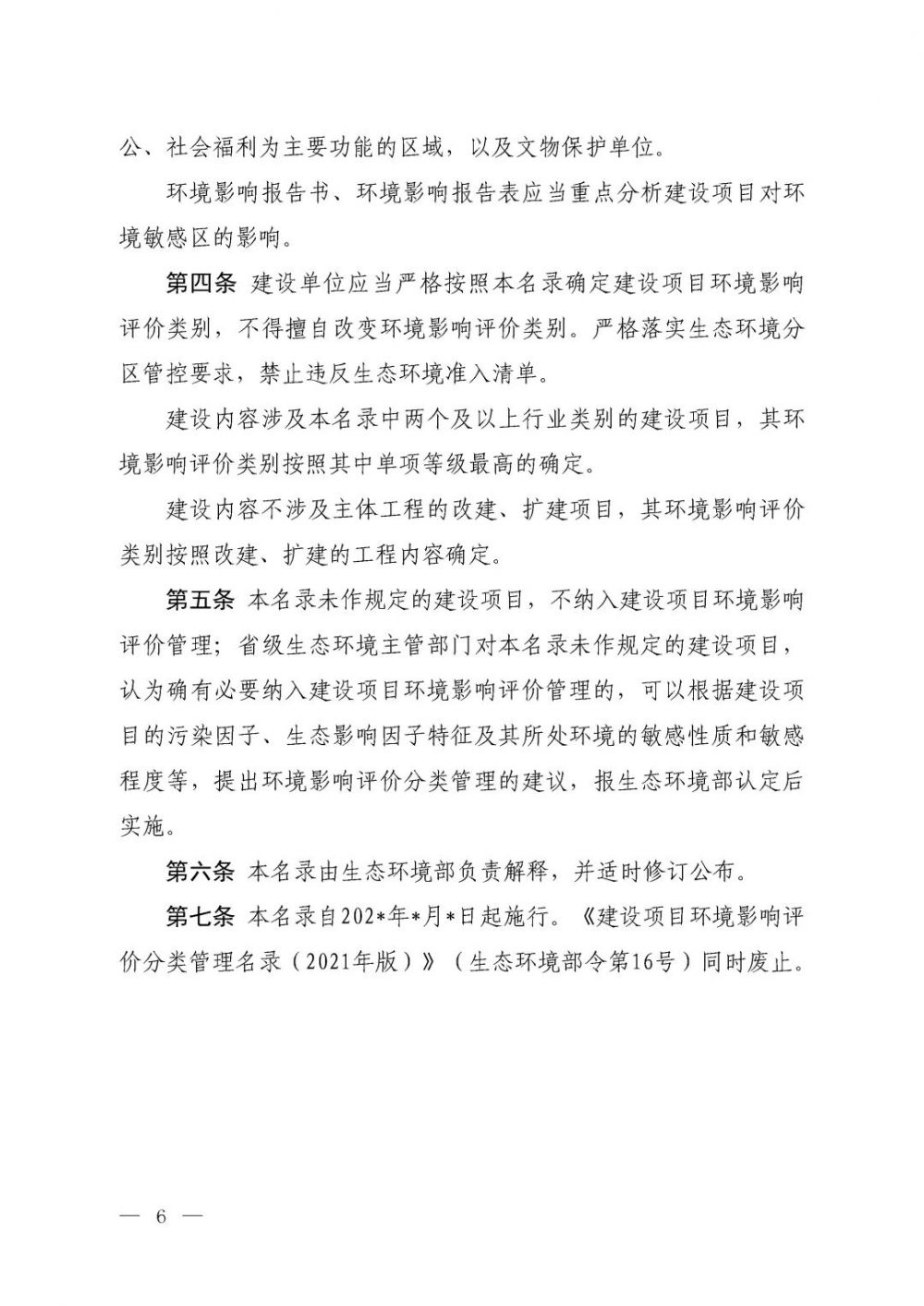 生态环境部|关于公开征求《建设项目环境影响评价分类管理名录(修订征求意见稿)》意见的函