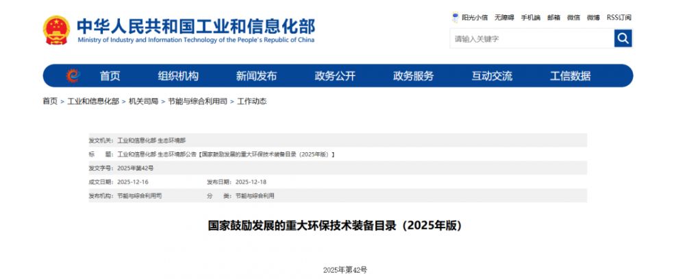 国家鼓励发展的重大环保技术装备目录(2025年版)发布