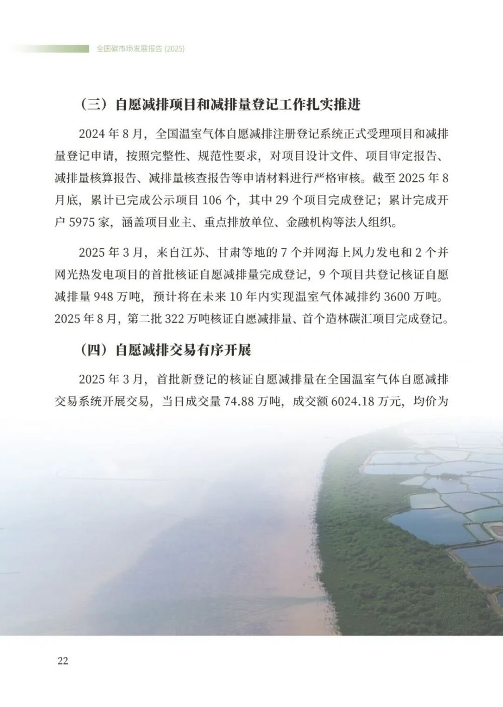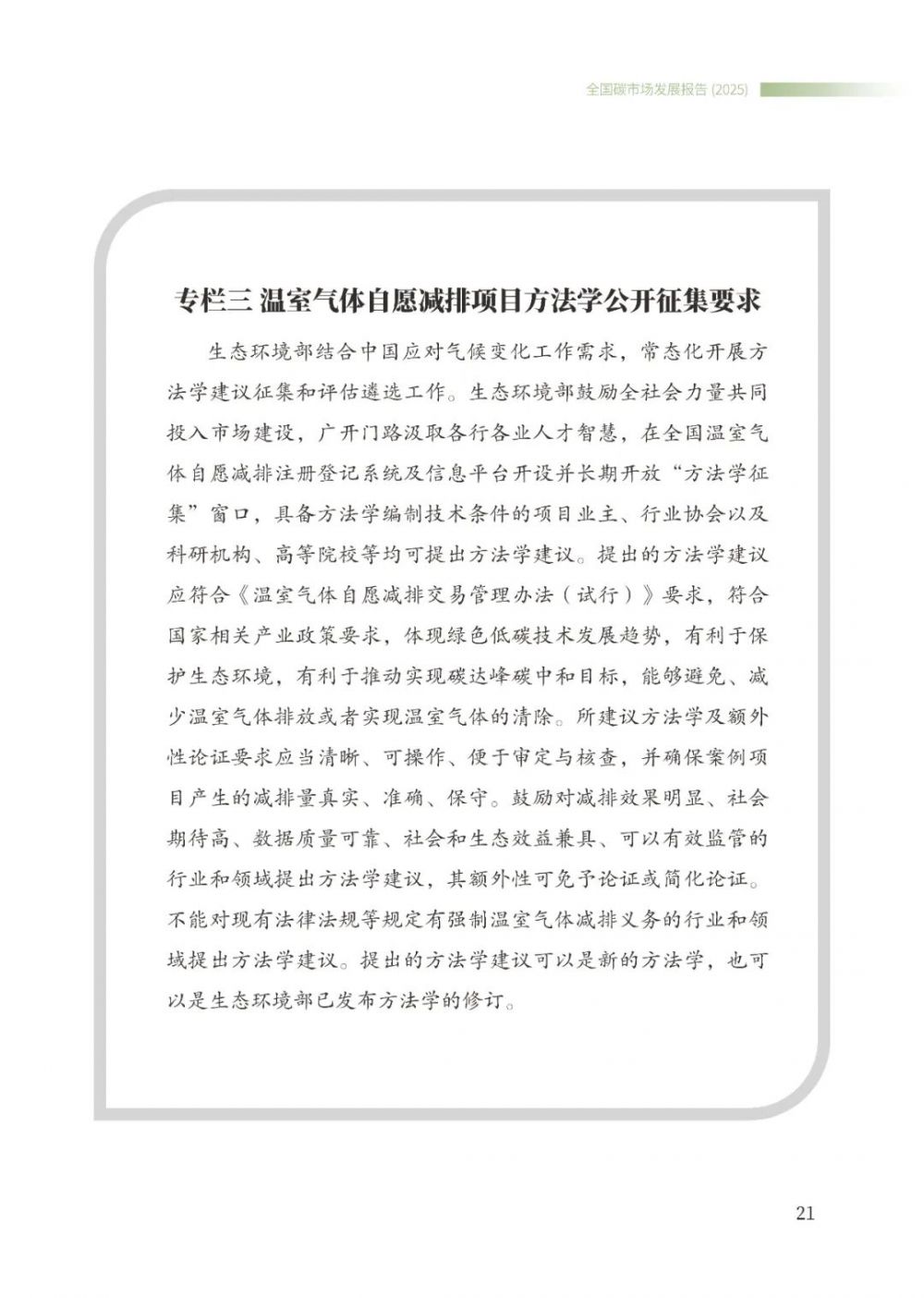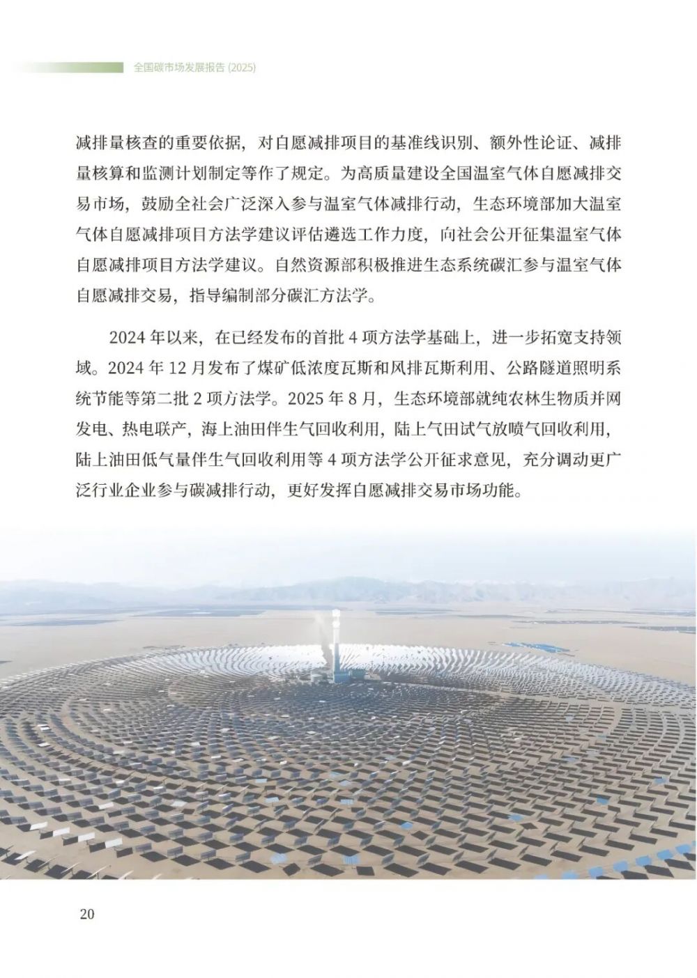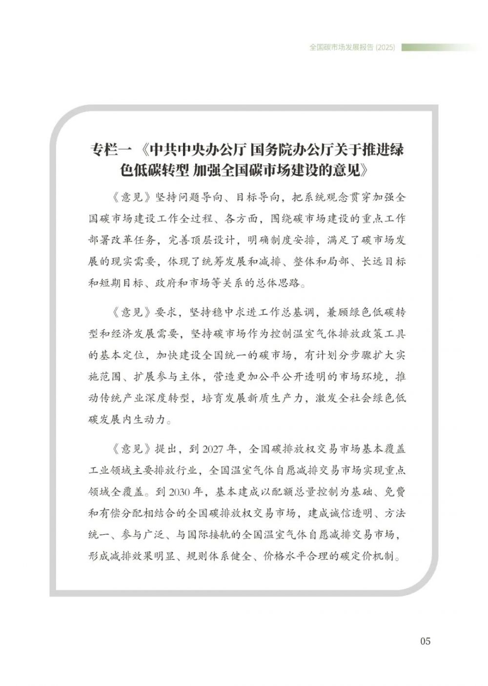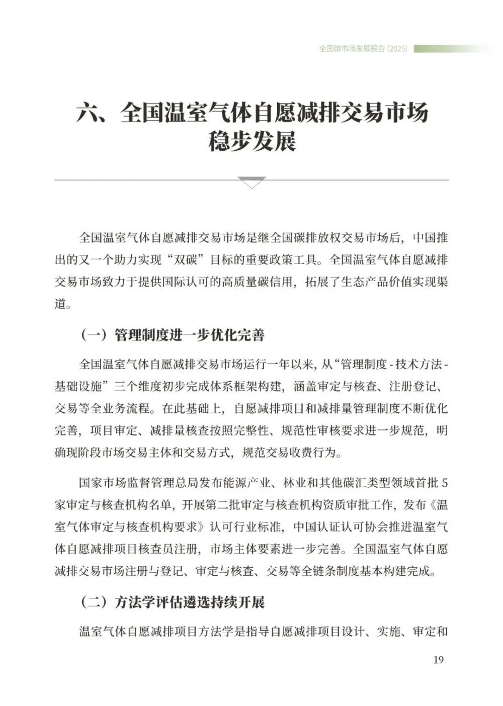 据介绍,《全国碳市场发展报告(2025)》系统总结了全国碳排放权交易市场和全国温室气体自愿减排交易市场的最新建设进展,全方位展示了市场建设运行成效,并展望了未来发展方向。这是继2024年《全国碳市场发展报告(2024)》之后,生态环境部发布的又一份全国碳市场进展情况报告。现将全文转发,供行业同仁学习参考。