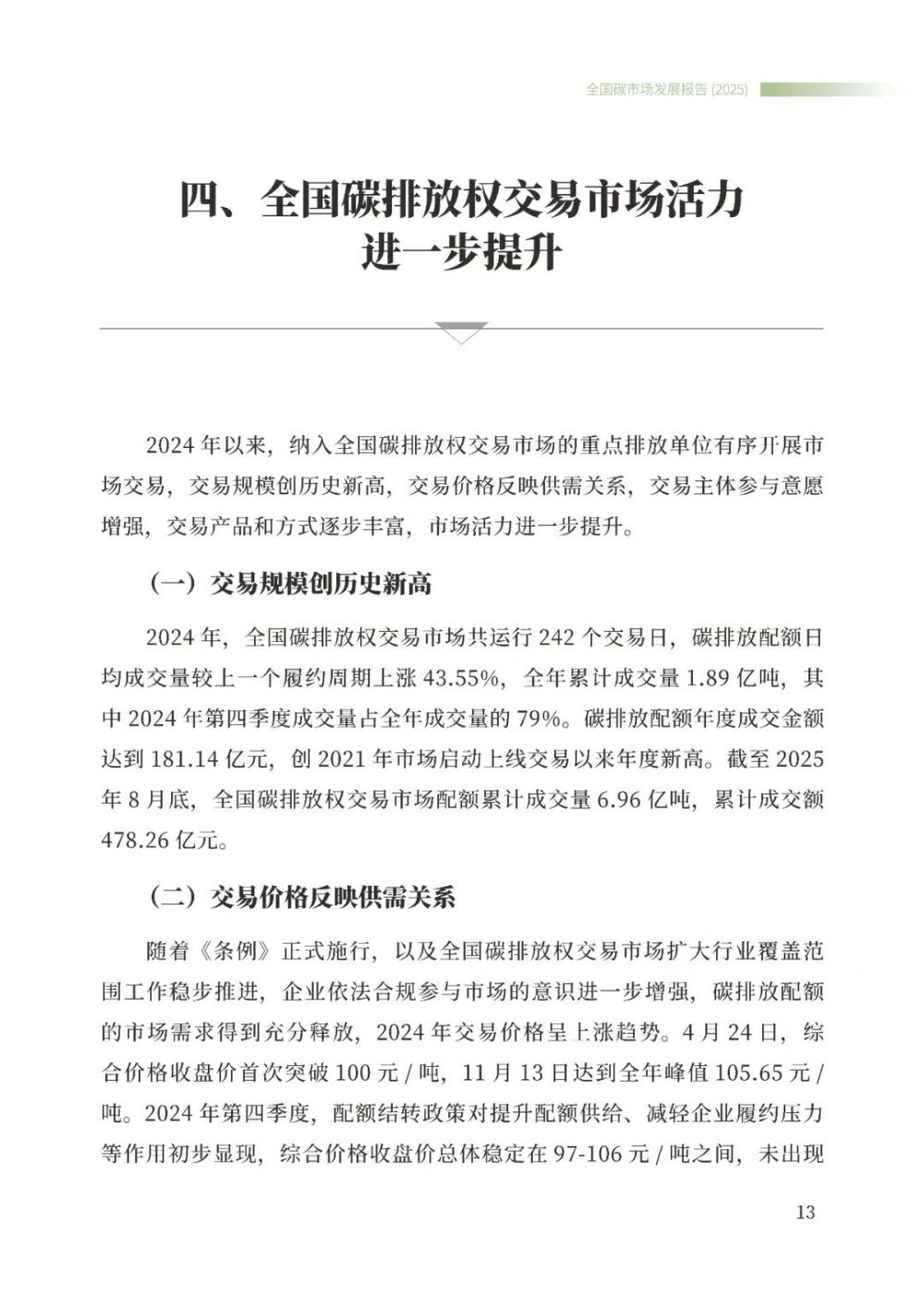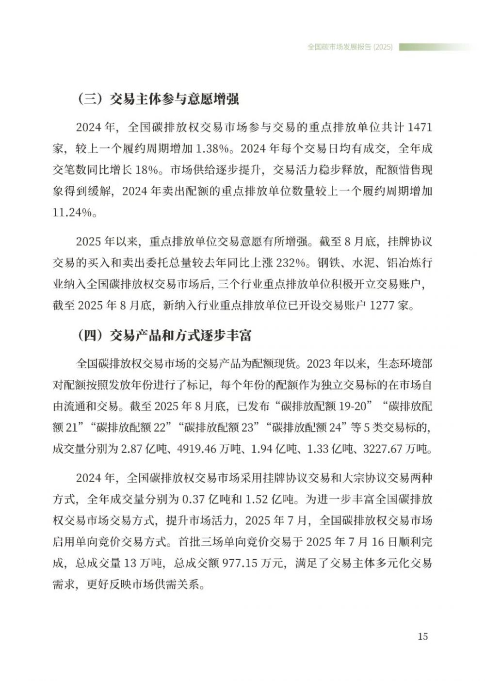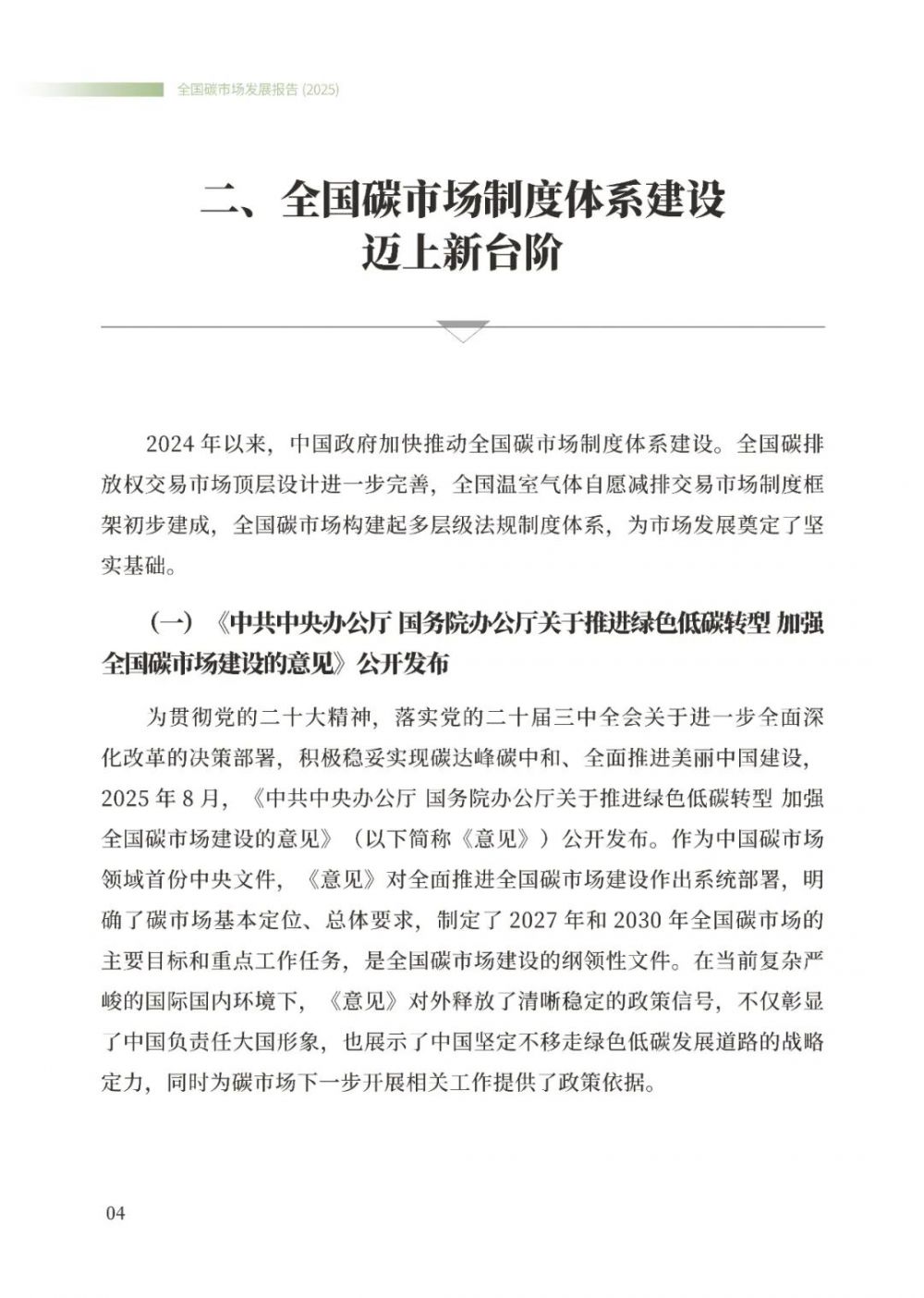 日前,生态环境部组织编制的《全国碳市场发展报告(2025)》在“2025年中国碳市场大会”上正式发布。