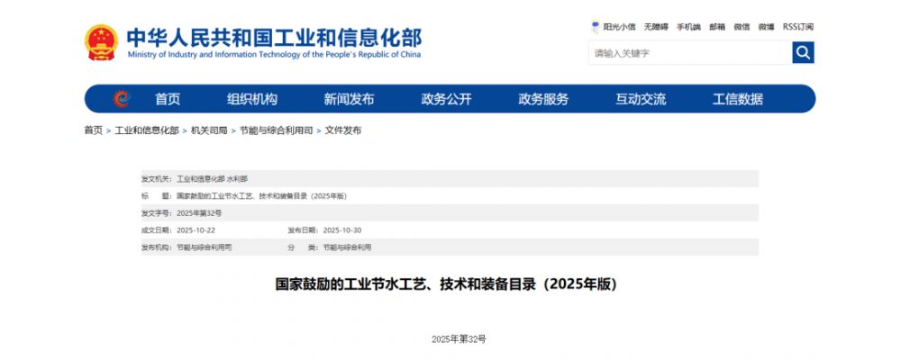 附件:国家鼓励的工业节水工艺、技术和装备目录(2025年版).pdf(点击下载)工业和信息化部