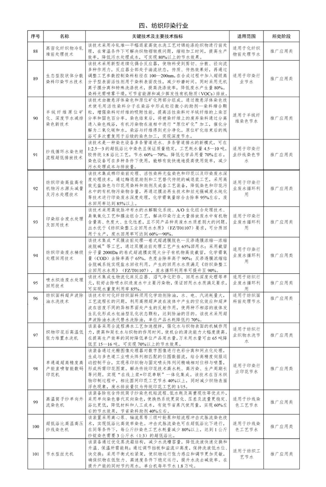 纺织印染行业技术名单
