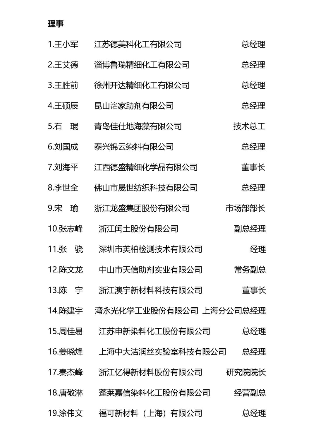 中国印染行业协会李鹏飞宣读了纺织化学品分会第一届理事会理事人选说明。
